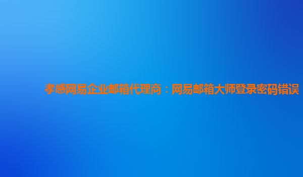 2024-02-28如何處理孝感網易企業郵箱代理商:網易郵箱大師登錄密碼錯誤 如果你是使用孝感網易企業郵箱代理商提供的網易郵箱大師出現登錄密碼錯誤的情況,可以通過以下步驟解決問題: 首先確認你輸入的密碼是否正確,注意...