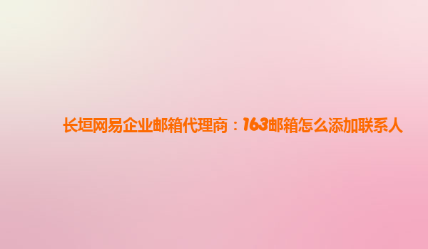 2024-02-28網易企業郵箱代理商:163郵箱怎么添加聯系人 作為一名企業用戶,郵箱的聯系人管理至關重要。在使用網易企業郵箱時,我們需要學會如何添加聯系人。下面就由我們的長垣網易企業郵箱代理商來為大家詳細介紹。 一、登...