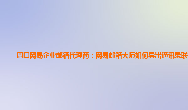 2024-02-28周口網易企業郵箱代理商:網易郵箱大師如何導出通訊錄聯系人 作為網易企業郵箱的代理商,我們發現越來越多的企業開始使用企業郵箱來提高工作效率和團隊協作能力。而其中最常用的功能之一就是通訊錄。通過企業郵箱的...