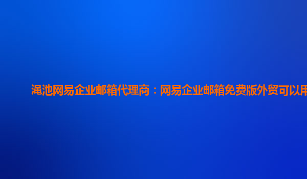 2024-02-28澠池網易企業郵箱代理商:網易企業郵箱免費版外貿可以用嗎 網易企業郵箱優勢 作為國內知名的企業郵箱服務提供商,網易企業郵箱具有以下優勢: 穩定可靠:采用分布式架構,全網無死角監控,保證99.9%的穩定性...
