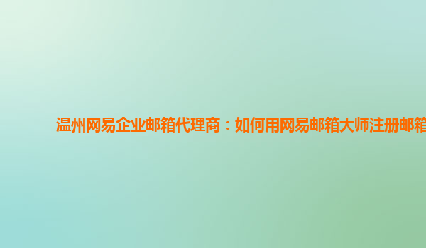 2024-02-27溫州網易企業郵箱代理商:如何用網易郵箱大師注冊郵箱 作為溫州網易企業郵箱的代理商,我們深知網易企業郵箱在企業辦公中的重要性。網易企業郵箱提供了穩定可靠的企業郵箱服務,讓企業能夠更高效地溝通和協作。下面...