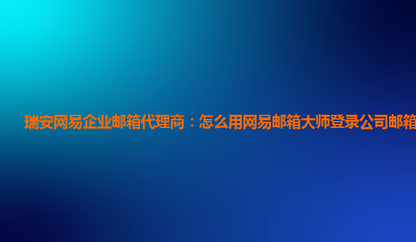 2024-02-27瑞安網易企業郵箱代理商:怎么用網易郵箱大師登錄公司郵箱賬號呢 作為瑞安地區的網易企業郵箱代理商,我們深知企業郵箱在日常辦公中的重要性,因此推薦使用網易企業郵箱來管理您的公司郵箱賬號。在使用網易企業郵箱...