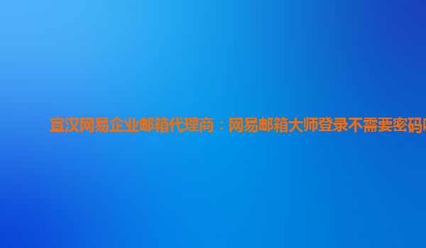 2024-02-26宣漢網易企業郵箱代理商:網易郵箱大師登錄不需要密碼嗎 作為宣漢地區的網易企業郵箱代理商,我們經常接觸到一些關于網易郵箱大師的疑問。其中一個常見問題就是:網易郵箱大師登錄不需要密碼嗎? 首先,讓我...