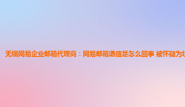 2024-02-24無錫網易企業郵箱代理商:網易郵箱退信是怎么回事被懷疑為垃圾郵件 在使用網易企業郵箱時,有時候會遇到郵件退信的情況。這種情況通常是由于郵件被系統誤認為是垃圾郵件而導致的。那么,究竟是什么原因導致了網易...