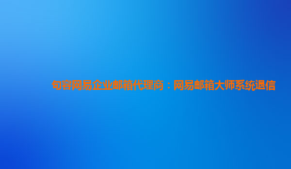 網易企業郵箱代理商:網易郵箱大師系統退信 作為一家企業,我們使用的是網易企業郵箱服務,通過網易企業郵箱代理商提供的網易郵箱大師系統,我們得以輕松管理公司的郵件交流和溝通。然而,有時候會遇到一些退信...