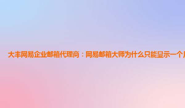 2024-02-24大豐網易企業郵箱代理商:網易郵箱大師為什么只能顯示一個月的郵件 在使用網易企業郵箱時,有些用戶可能會發現網易郵箱大師只能顯示一個月的郵件。這種情況通常是由于郵箱設置或者郵件管理策略所導致的,下面我們來...
