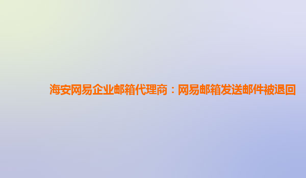 2024-02-24海安網易企業郵箱代理商:網易郵箱發送郵件被退回 問題描述: 最近有客戶向我們反映,使用網易企業郵箱發送郵件時,經常會出現被退回的情況。這給工作帶來了不便,需要解決這個問題。 網易企業郵箱優勢: 作為一家...