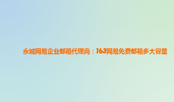 2024-02-23永城網易企業郵箱代理商:163網易免費郵箱多大容量 網易企業郵箱是一款專門為企業客戶提供的電子郵件服務,具有穩定可靠、安全高效等特點。作為永城網易企業郵箱代理商,我們為您介紹163網易免費郵箱的容量大小。 ...