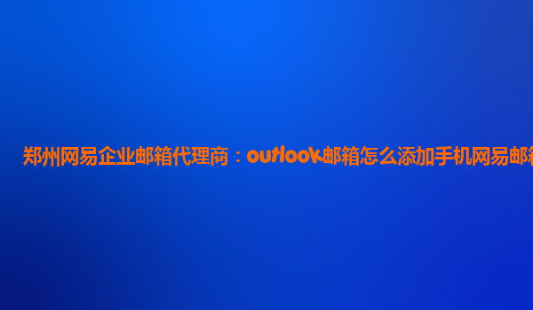 2024-02-23鄭州網易企業郵箱代理商:outlook郵箱怎么添加手機網易郵箱 網易企業郵箱是一款專業的企業郵件解決方案,為企業提供穩定、安全、高效的電子郵件服務。作為鄭州網易企業郵箱代理商,我們將為您介紹如何在outlook郵箱...
