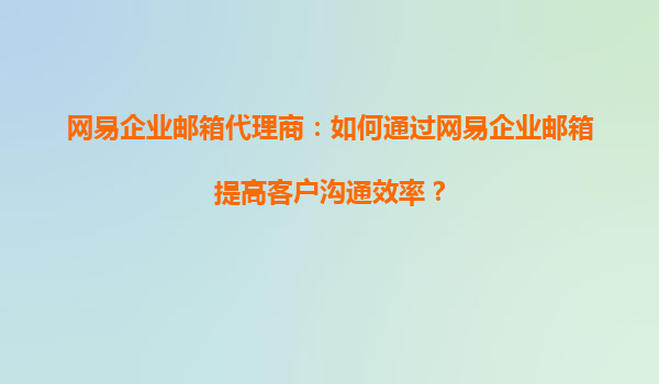 2025-09-17網易企業(yè)郵箱代理商:如何通過網易企業(yè)郵箱提高客戶溝通效率? 一、引言 隨著企業(yè)數(shù)字化轉型的加速,高效的客戶溝通成為企業(yè)發(fā)展的核心競爭力之一。作為網易企業(yè)郵箱代理商,如何幫助客戶利用網易企業(yè)郵箱...