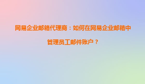 網易企業(yè)郵箱代理商指南:高效管理員工郵件賬戶 一、網易企業(yè)郵箱的核心優(yōu)勢 作為國內領先的企業(yè)級郵箱服務商,網易企業(yè)郵箱憑借穩(wěn)定的系統(tǒng)架構、強大的安全防護和人性化管理功能,成為超過80萬家企業(yè)...