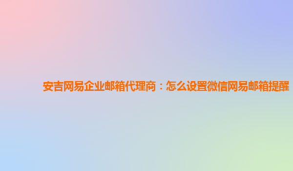 2024-02-22如何設置微信網易郵箱提醒 作為安吉網易企業郵箱代理商,我們深知網易企業郵箱的強大功能和優勢,其中之一就是可以通過微信提醒功能來及時收取重要郵件。下面就讓我們來看看如何設置微信網易郵箱提醒吧。 步驟一:...