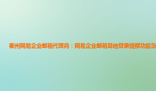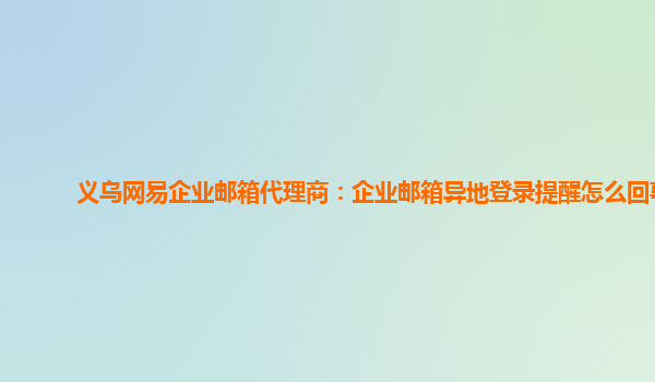 2024-02-22義烏網易企業郵箱代理商:企業郵箱異地登錄提醒怎么回事 企業郵箱是企業日常辦公中不可或缺的重要工具之一,為了保障企業郵箱的安全性和保密性,網易企業郵箱提供了異地登錄提醒功能。當您在非常用地點登錄企業...