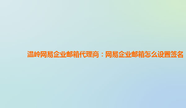 2024-02-22溫嶺網易企業郵箱代理商:網易企業郵箱怎么設置簽名 優勢分析 網易企業郵箱作為國內領先的企業級郵箱服務商,具有以下優勢: 穩定可靠:采用全球頂級郵件系統架構,保證穩定性和安全性; 功能強大:支持多種自...
