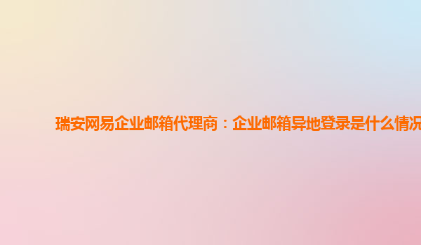 2024-02-22瑞安網易企業郵箱代理商:企業郵箱異地登錄是什么情況 企業郵箱異地登錄的情況 企業郵箱異地登錄是指用戶在非常用登錄地點或設備上登錄郵箱時出現的情況。例如,用戶平常在辦公室使用公司電腦登錄企業郵箱,突然在...