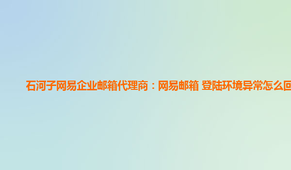 2024-02-21石河子網易企業郵箱代理商:網易郵箱登陸環境異常怎么回事 作為石河子地區的網易企業郵箱代理商,我們經常遇到一些客戶在使用網易企業郵箱時遇到登陸環境異常的問題。那么究竟是什么原因導致這種情況呢? ...