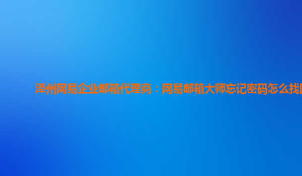 2024-02-21澤州網易企業郵箱代理商:網易郵箱大師忘記密碼怎么找回 作為澤州地區的網易企業郵箱代理商,我們深知企業郵箱對于企業的重要性。使用網易企業郵箱可以提高企業形象、保障郵件安全和提升工作效率。而在使用過程中,...