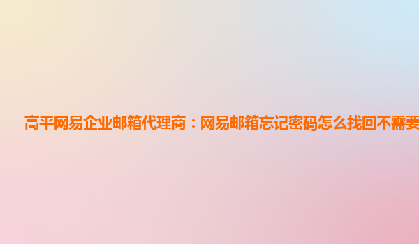 2024-02-21高平網易企業郵箱代理商:網易郵箱忘記密碼怎么找回不需要手機號 作為一家專業的高平網易企業郵箱代理商,我們致力于為企業提供優質的企業郵箱服務。在使用網易企業郵箱的過程中,有時候會遇到忘記密碼的情...