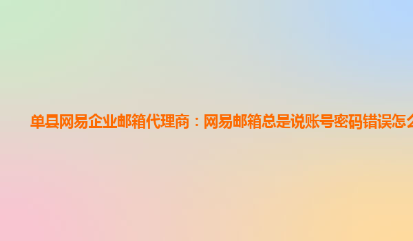 2024-02-20單縣網易企業郵箱代理商:網易郵箱總是說賬號密碼錯誤怎么回事 最近使用網易企業郵箱的用戶可能會遇到一個問題,就是無論怎么輸入賬號密碼,都顯示賬號密碼錯誤。這究竟是怎么回事呢? 首先,我們要了解網易企業郵...