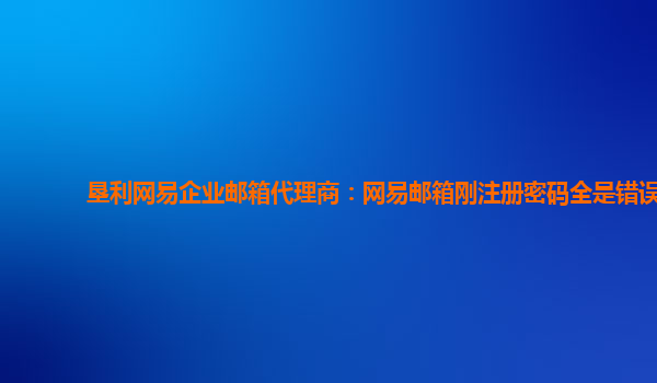2024-02-20墾利網易企業郵箱代理商:解決網易郵箱剛注冊密碼全是錯誤 問題描述: 最近很多人反映,在注冊網易企業郵箱時,輸入的密碼總是提示錯誤,無法成功注冊賬號。 解決方案: 作為墾利地區的網易企業郵箱代理商,我們可...