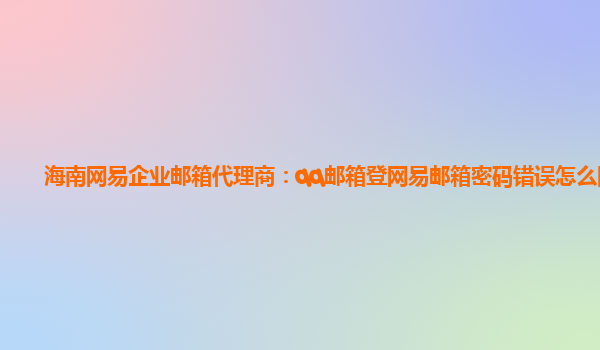 2024-02-20龍口網易企業郵箱代理商:網易郵箱登錄時總是顯示密碼錯誤 最近使用網易企業郵箱的過程中,不少用戶反映在登錄時總是顯示密碼錯誤的問題。這個問題讓很多用戶感到困惑和煩惱,但其實只需要注意一些細節,就能輕松解...