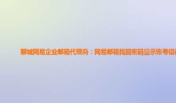 2024-02-20聊城網易企業郵箱代理商:網易郵箱找回密碼顯示賬號錯誤 最近有用戶反饋在使用網易企業郵箱找回密碼時,出現賬號錯誤的情況。作為聊城網易企業郵箱代理商,我們希望通過本文為大家解決這一問題。 網易企業郵箱優勢...