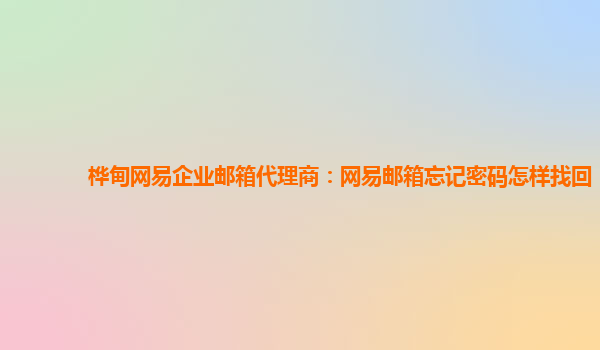 2024-02-20如何找回忘記的網易企業郵箱賬號密碼 介紹 作為磐石網易企業郵箱代理商,我們深知網易企業郵箱在企業辦公中的重要性。無論是用于內部溝通、日程安排還是郵件管理,網易企業郵箱都是一個不可或缺的工具。然而,有時...