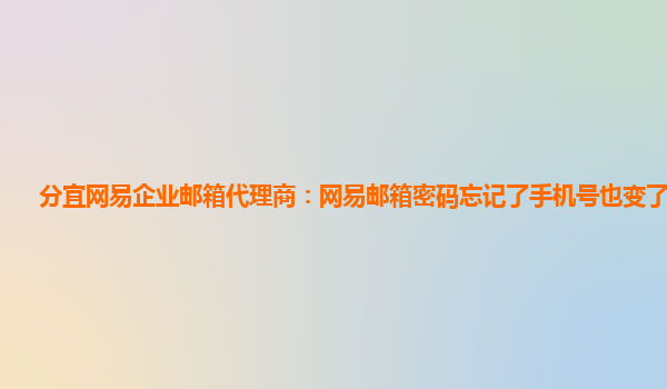 2024-02-20豐城網易企業郵箱代理商:網易郵箱密碼忘記了手機號也變不了 隨著互聯網的發展,越來越多的企業開始使用網易企業郵箱作為公司的郵件系統。然而,在使用過程中,有時候會遇到一些問題,比如忘記了郵箱密碼,或者手機...