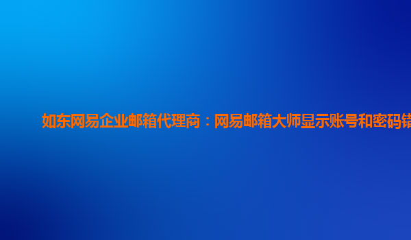 2024-02-19如東網易企業郵箱代理商:網易郵箱大師顯示賬號和密碼錯誤 最近我們收到了一些客戶反饋,使用網易郵箱大師時出現了賬號和密碼錯誤的問題。經過我們的技術團隊的調查,發現這是由于用戶輸入的賬號或密碼有誤導致的。...
