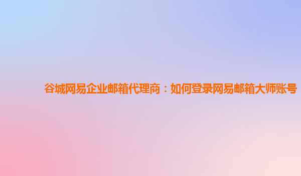 2024-02-19谷城網易企業郵箱代理商:如何登錄網易郵箱大師賬號 作為谷城地區的網易企業郵箱代理商,我們經常接觸到使用網易企業郵箱的客戶。其中,網易郵箱大師是一個非常實用的工具,能夠幫助用戶更加高效地管理和使用企業郵...