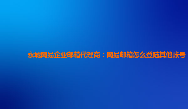 2024-02-18永城網易企業郵箱代理商:網易郵箱怎么登陸其他賬號 作為一家永城網易企業郵箱代理商,我們深知網易企業郵箱作為國內領先的企業郵箱服務商,擁有穩定可靠的技術支持和豐富的功能,幫助企業提升工作效率和形象。...