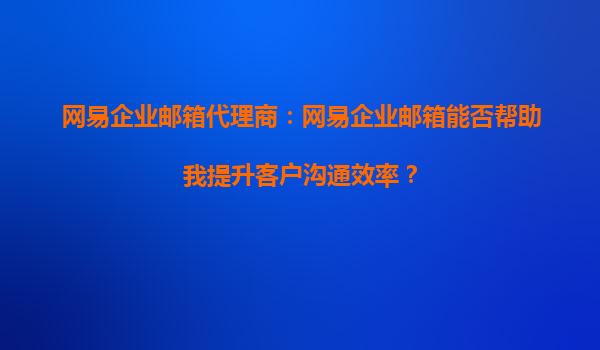 2025-09-16網(wǎng)易企業(yè)郵箱代理商:網(wǎng)易企業(yè)郵箱能否幫助我提升客戶溝通效率? 一、企業(yè)郵箱如何成為客戶溝通的助推器? 在數(shù)字化商業(yè)環(huán)境中,高效的客戶溝通是企業(yè)成功的關(guān)鍵因素之一。而網(wǎng)易企業(yè)郵箱作為專業(yè)...
