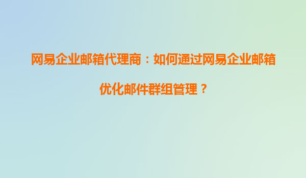 2025-09-16網(wǎng)易企業(yè)郵箱代理商:如何通過(guò)網(wǎng)易企業(yè)郵箱優(yōu)化郵件群組管理? 企業(yè)日常運(yùn)營(yíng)中,郵件群組是高效溝通的重要工具。網(wǎng)易企業(yè)郵箱憑借其強(qiáng)大的功能和穩(wěn)定的性能,為企業(yè)提供了優(yōu)質(zhì)的郵件群組管理解決方案。本文將詳細(xì)介...