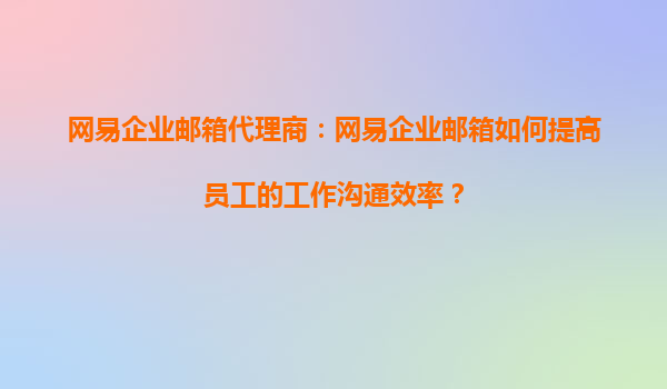 2025-09-16網(wǎng)易企業(yè)郵箱代理商:網(wǎng)易企業(yè)郵箱如何提高員工的工作溝通效率? 一、引言 在現(xiàn)代企業(yè)中,高效的工作溝通是實(shí)現(xiàn)業(yè)務(wù)目標(biāo)的核心要素之一。網(wǎng)易企業(yè)郵箱作為國(guó)內(nèi)領(lǐng)先的企業(yè)級(jí)郵箱服務(wù),憑借其穩(wěn)定的架...