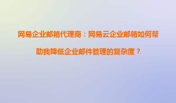 2025-09-16網(wǎng)易企業(yè)郵箱代理商:網(wǎng)易云企業(yè)郵箱如何幫助企業(yè)降低郵件管理復(fù)雜度 一、企業(yè)郵件管理的挑戰(zhàn) 在數(shù)字化辦公環(huán)境中,企業(yè)郵件系統(tǒng)是日常溝通的重要工具。但隨著企業(yè)規(guī)模擴(kuò)大,郵件管理面臨諸...