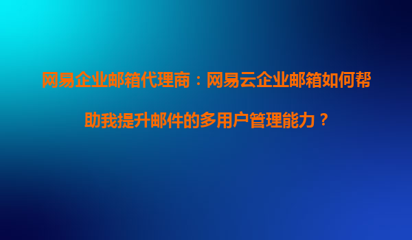 2025-09-16網(wǎng)易企業(yè)郵箱代理商:網(wǎng)易云企業(yè)郵箱如何幫助我提升郵件的多用戶管理能力? 在當(dāng)今快節(jié)奏的商業(yè)環(huán)境中,高效的企業(yè)郵件通信系統(tǒng)對(duì)企業(yè)的運(yùn)營(yíng)至關(guān)重要。網(wǎng)易企業(yè)郵箱作為國(guó)內(nèi)領(lǐng)先的企業(yè)郵箱服務(wù)提供商之一,...