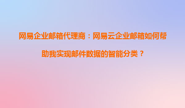 2025-09-06網(wǎng)易企業(yè)郵箱代理商:網(wǎng)易云企業(yè)郵箱如何幫助我實(shí)現(xiàn)郵件數(shù)據(jù)的智能分類(lèi)? 一、引言 在快節(jié)奏的商業(yè)環(huán)境中,企業(yè)每天需要處理大量的電子郵件。如何高效管理郵件數(shù)據(jù),尤其是實(shí)現(xiàn)智能分類(lèi),成為提升...