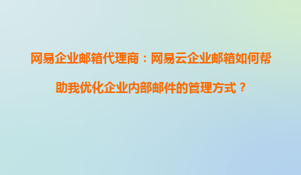 2025-09-16網(wǎng)易企業(yè)郵箱代理商:網(wǎng)易云企業(yè)郵箱如何優(yōu)化企業(yè)內(nèi)部郵件管理 一、引言 在數(shù)字化辦公時(shí)代,郵件系統(tǒng)是企業(yè)內(nèi)外溝通的核心工具之一。傳統(tǒng)的郵件管理方式常因安全性不足、...
