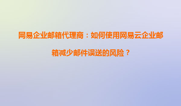 2025-09-04網(wǎng)易企業(yè)郵箱代理商:如何使用網(wǎng)易云企業(yè)郵箱減少郵件誤送的風(fēng)險? 在現(xiàn)代商業(yè)溝通中,郵件是企業(yè)內(nèi)部和外部交流的重要工具,而郵件誤送可能導(dǎo)致嚴(yán)重的信息泄露或業(yè)務(wù)損失。作為網(wǎng)易企業(yè)郵箱代理商,...