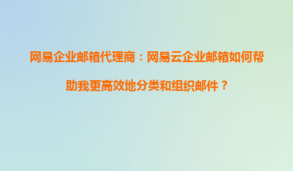 2025-09-04網(wǎng)易企業(yè)郵箱代理商:網(wǎng)易云企業(yè)郵箱如何幫助您更高效地分類和組織郵件? 在現(xiàn)代企業(yè)管理中,高效的郵件管理是提升團隊協(xié)作和溝通效率的關(guān)鍵。作為國內(nèi)領(lǐng)先的企業(yè)郵箱服務(wù)提供商,網(wǎng)易企業(yè)郵箱(網(wǎng)易云企業(yè)郵...