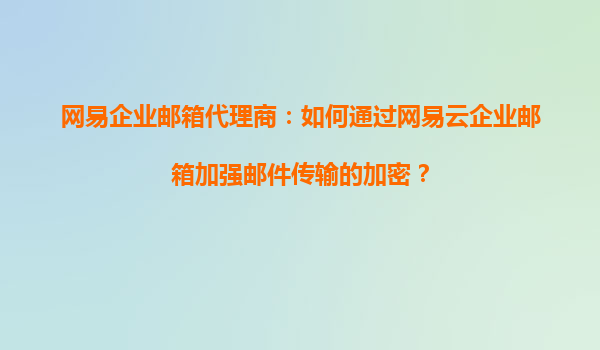 2025-09-05網(wǎng)易企業(yè)郵箱代理商:如何通過網(wǎng)易云企業(yè)郵箱加強郵件傳輸?shù)募用埽? 引言 在數(shù)字化辦公時代,企業(yè)郵箱不僅是溝通的橋梁,更是數(shù)據(jù)安全的重要防線。作為網(wǎng)易企業(yè)...