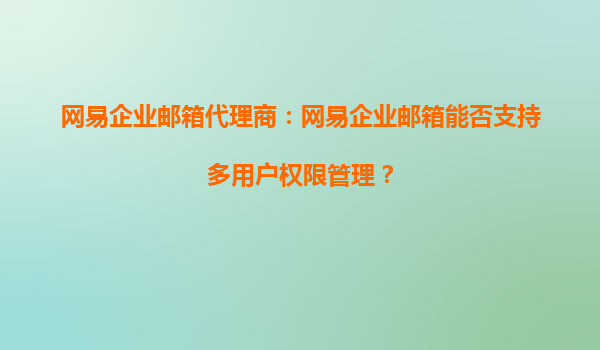 2025-08-31網(wǎng)易企業(yè)郵箱代理商:網(wǎng)易企業(yè)郵箱能否支持多用戶權(quán)限管理? 在當(dāng)今數(shù)字化辦公環(huán)境中,企業(yè)郵箱不僅是溝通工具,更是企業(yè)管理的重要平臺(tái)。網(wǎng)易企業(yè)郵箱作為國(guó)內(nèi)領(lǐng)先的企業(yè)郵箱服務(wù)提供商,憑借其強(qiáng)大...