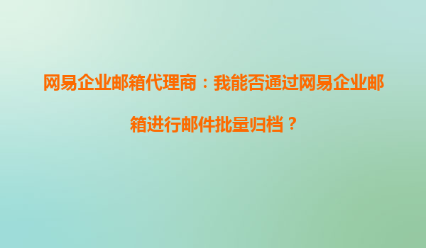 2025-08-30網(wǎng)易企業(yè)郵箱代理商:如何通過(guò)網(wǎng)易企業(yè)郵箱實(shí)現(xiàn)郵件批量歸檔? 在當(dāng)今數(shù)字化辦公環(huán)境中,企業(yè)郵件的管理和歸檔變得尤為重要。網(wǎng)易企業(yè)郵箱作為國(guó)內(nèi)領(lǐng)先的企業(yè)郵箱服務(wù)提供商,不僅提供了穩(wěn)定高效的郵件收發(fā)功能...