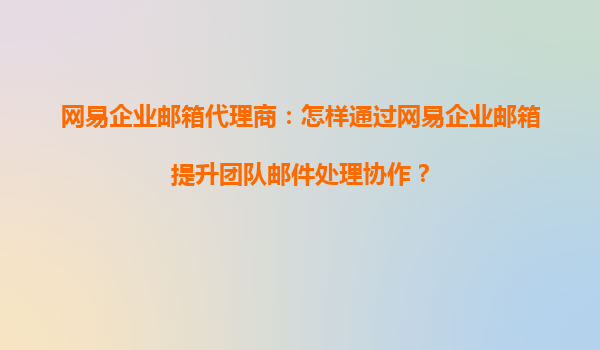 2025-08-30網(wǎng)易企業(yè)郵箱代理商:怎樣通過(guò)網(wǎng)易企業(yè)郵箱提升團(tuán)隊(duì)郵件處理協(xié)作? 在當(dāng)今快節(jié)奏的商業(yè)環(huán)境中,高效的郵件處理協(xié)作是企業(yè)成功的關(guān)鍵因素之一。作為網(wǎng)易企業(yè)郵箱的代理商,我們深知網(wǎng)易企業(yè)郵箱在提升團(tuán)隊(duì)協(xié)作效率...