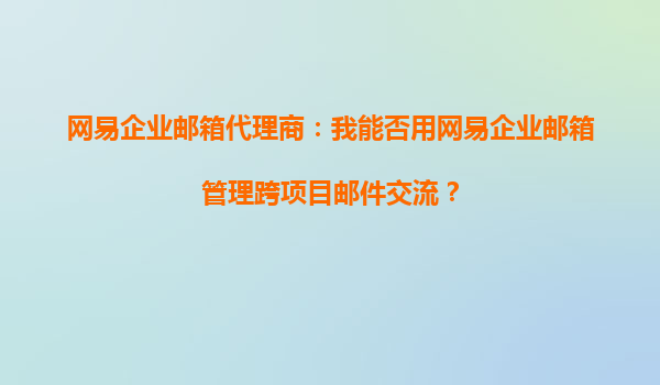 2025-08-31網(wǎng)易企業(yè)郵箱代理商:我能否用網(wǎng)易企業(yè)郵箱管理跨項(xiàng)目郵件交流? 在現(xiàn)代企業(yè)管理中,跨項(xiàng)目協(xié)作已成為常態(tài)。無(wú)論是大型企業(yè)還是中小型企業(yè),都需要高效、便捷的郵件溝通工具來(lái)確保項(xiàng)目順利進(jìn)行。作為網(wǎng)易企業(yè)郵...