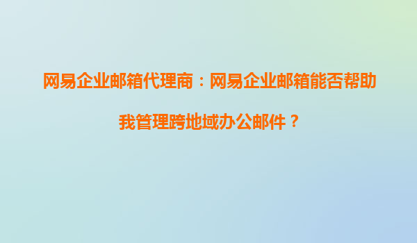 2025-08-30網(wǎng)易企業(yè)郵箱代理商:網(wǎng)易企業(yè)郵箱能否幫助我管理跨地域辦公郵件? 一、跨地域辦公的郵件管理挑戰(zhàn) 隨著企業(yè)業(yè)務(wù)范圍的擴(kuò)大,跨地域辦公已成為常態(tài)。然而,分散的團(tuán)隊(duì)也帶來(lái)了郵件管理的...