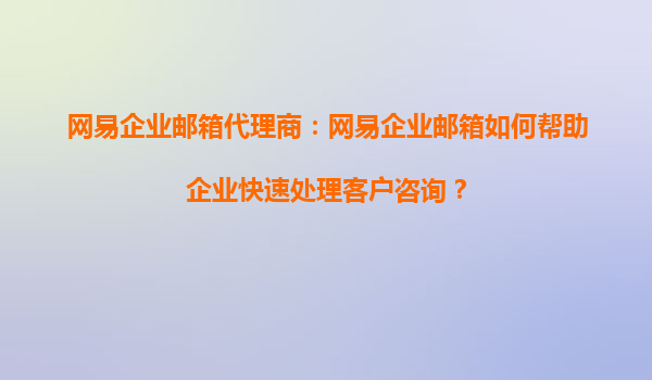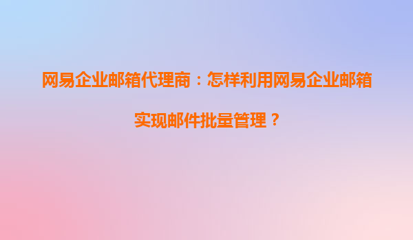 2025-08-29網(wǎng)易企業(yè)郵箱代理商:怎樣利用網(wǎng)易企業(yè)郵箱實(shí)現(xiàn)郵件批量管理? 一、網(wǎng)易企業(yè)郵箱的核心優(yōu)勢 網(wǎng)易企業(yè)郵箱作為國內(nèi)領(lǐng)先的企業(yè)級郵件服務(wù),憑借以下優(yōu)勢成為代理商推廣的首選: 高穩(wěn)定性與安全...