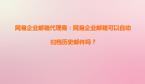 2025-08-29網(wǎng)易企業(yè)郵箱代理商:網(wǎng)易企業(yè)郵箱可以自動歸檔歷史郵件嗎? 在當(dāng)今數(shù)字化辦公環(huán)境中,企業(yè)郵箱不僅是溝通的橋梁,更是信息管理的重要工具。許多企業(yè)在選擇郵箱服務(wù)時(shí),會特別關(guān)注郵件的存儲和管理功...