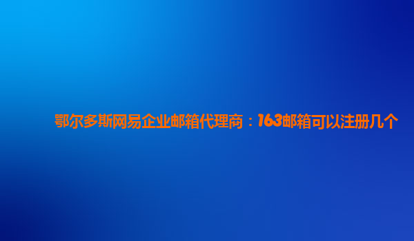 4008-020-360 網(wǎng)易企業(yè)郵箱代理商:163郵箱可以注冊(cè)幾個(gè) 作為鄂爾多斯網(wǎng)易企業(yè)郵箱的代理商,我們經(jīng)常會(huì)被問(wèn)到一個(gè)問(wèn)題:“163郵箱可以注冊(cè)幾個(gè)?”今天,我們將通過(guò)本文來(lái)解答這個(gè)問(wèn)題,并重點(diǎn)介紹網(wǎng)易企業(yè)郵箱的優(yōu)勢(shì)和使用企業(yè)...