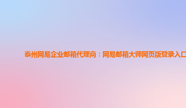 2024-01-14泰州網(wǎng)易企業(yè)郵箱代理商:網(wǎng)易郵箱大師網(wǎng)頁(yè)版登錄入口 小標(biāo)題一:網(wǎng)易企業(yè)郵箱優(yōu)勢(shì) 網(wǎng)易企業(yè)郵箱是一款專為企業(yè)用戶設(shè)計(jì)的高效、安全、穩(wěn)定的企業(yè)級(jí)電子郵件解決方案。其主要優(yōu)勢(shì)包括: 穩(wěn)定可靠:基于網(wǎng)易多年積...